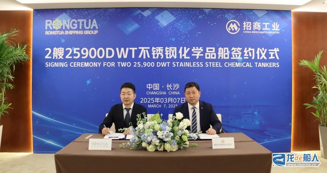 3月7日,招商局金陵鼎衡船舶(揚州)有限公司與蓉達航運集團正式簽署2艘2.59萬噸級不銹鋼化學品船造船合同。