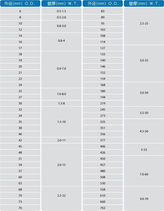 產品尺寸:不銹鋼圓管:外徑6mm-762mm